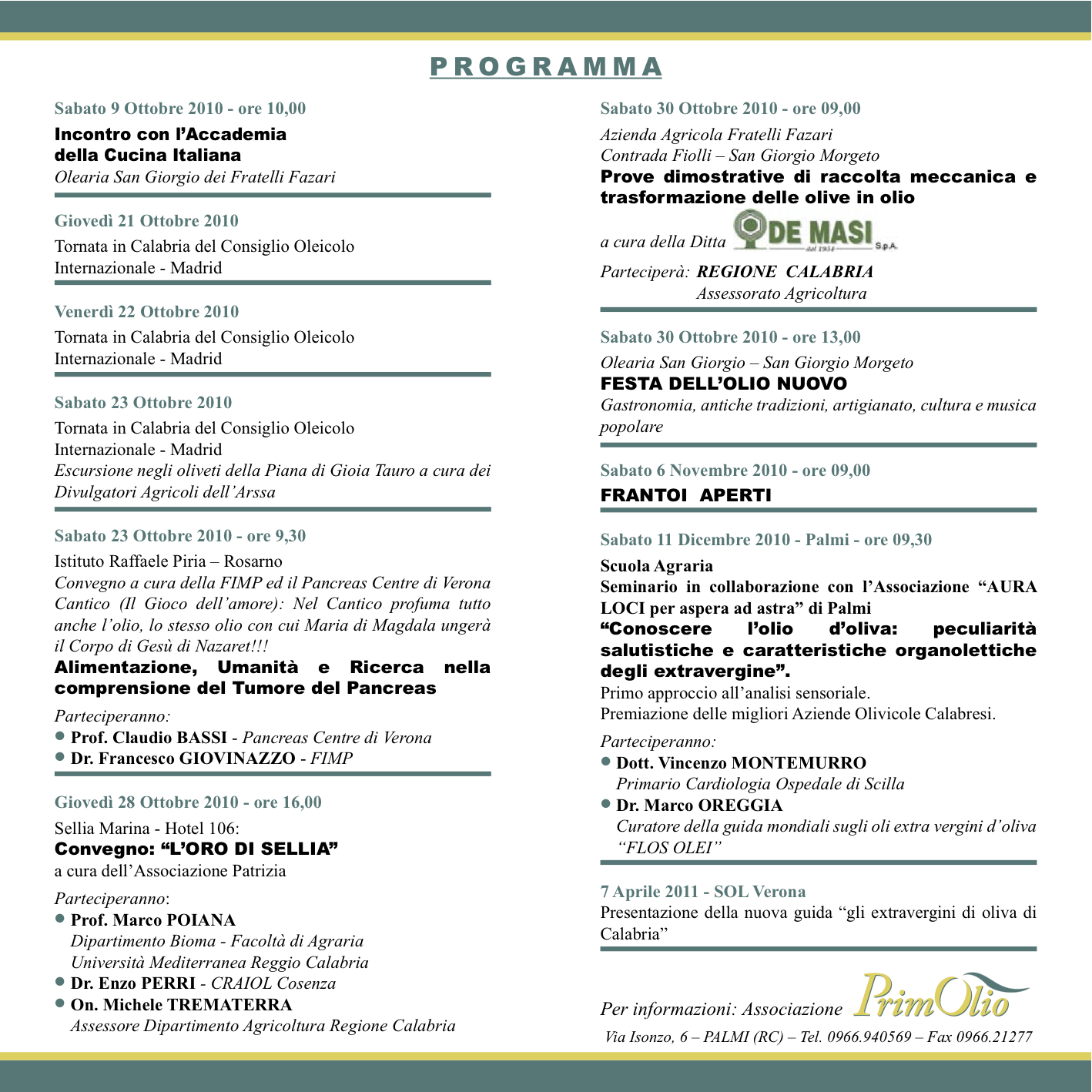 Per informazioni: associazione PrimOlio, tel. 0966.940569, fax 0966.21277.
