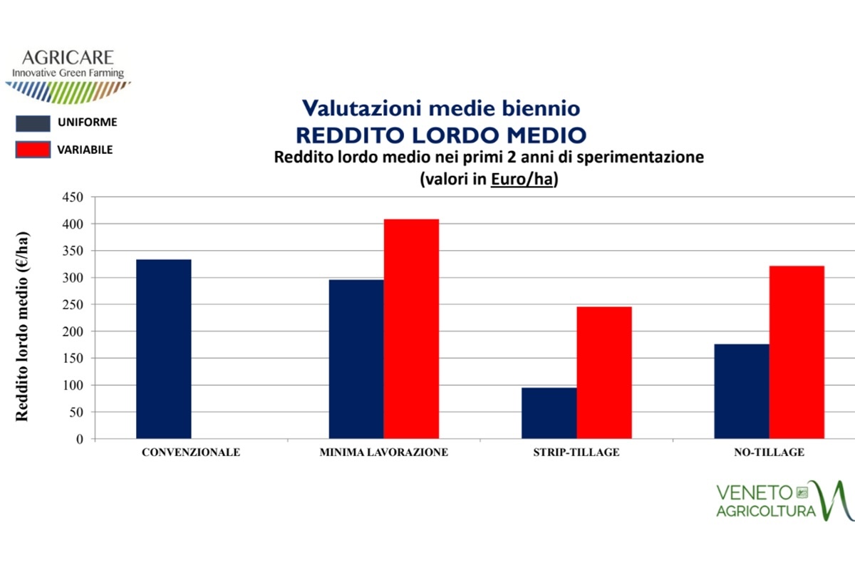 Lo studio è stato condotto su circa 300 ettari complessivi per ciascun trattamento, randomizzando un blocco con i due trattamenti per ogni zona omogenea individuata secondo i criteri dell'agricoltura di precisione. La Foto 1 mostra che il sistema più redditizio è quello Acfo con minima lavorazione.