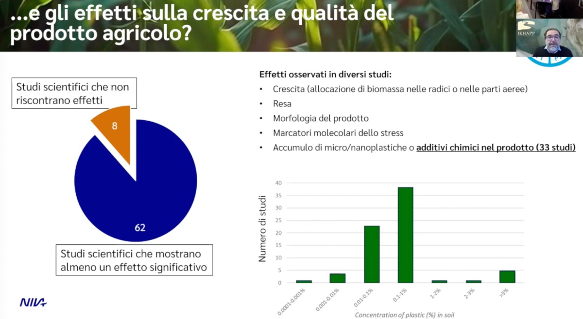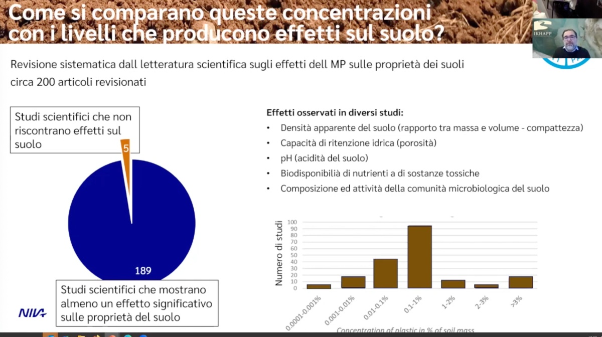 Diversi studi, inclusi quelli condotti nel progetto Horizon 2020 Papillons, hanno evidenziato che l'accumulo di micro e nanoplastiche nel suolo può alterarne caratteristiche fondamentali: