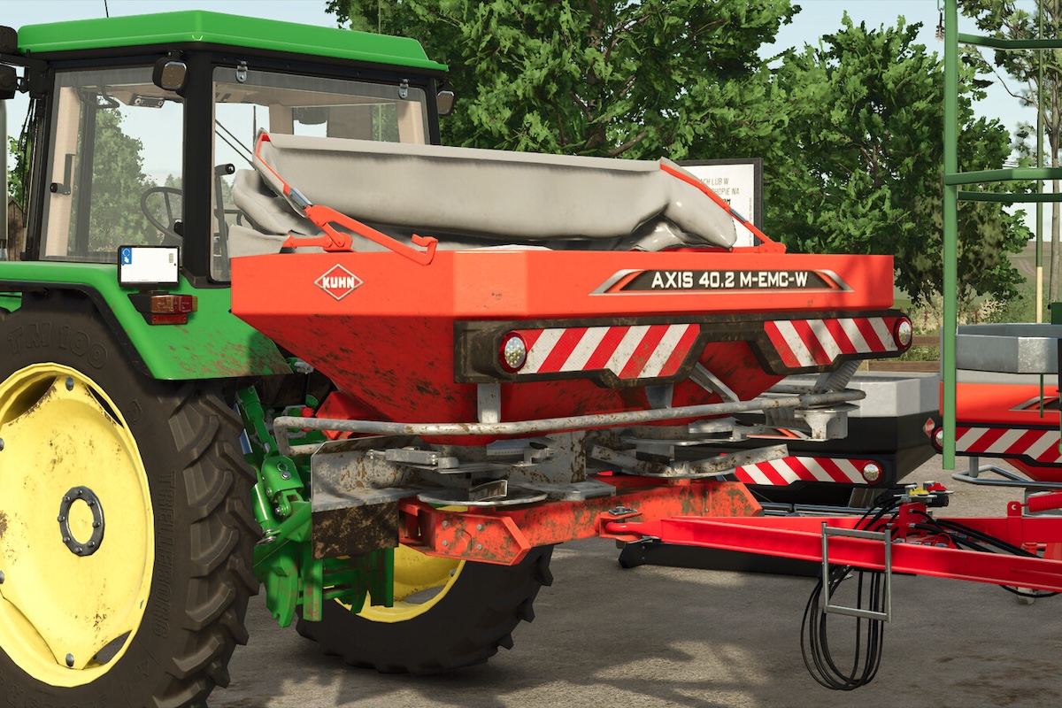 Particolarmente apprezzati sono i dettagli dinamici delle attrezzature come gli effetti visibili sullo spandiconcime KUHN in foto