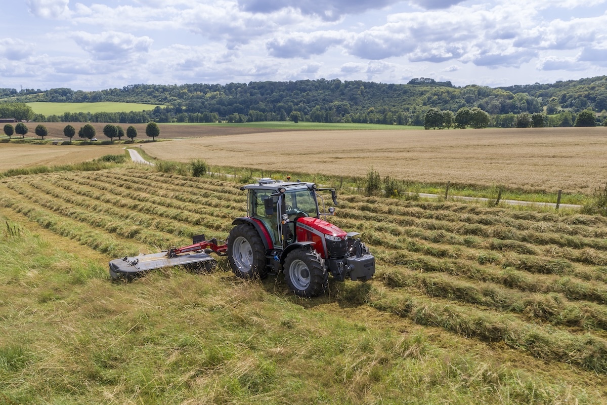 Nuovo trattore MF 5M.105 all'opera con una falciatrice posteriore