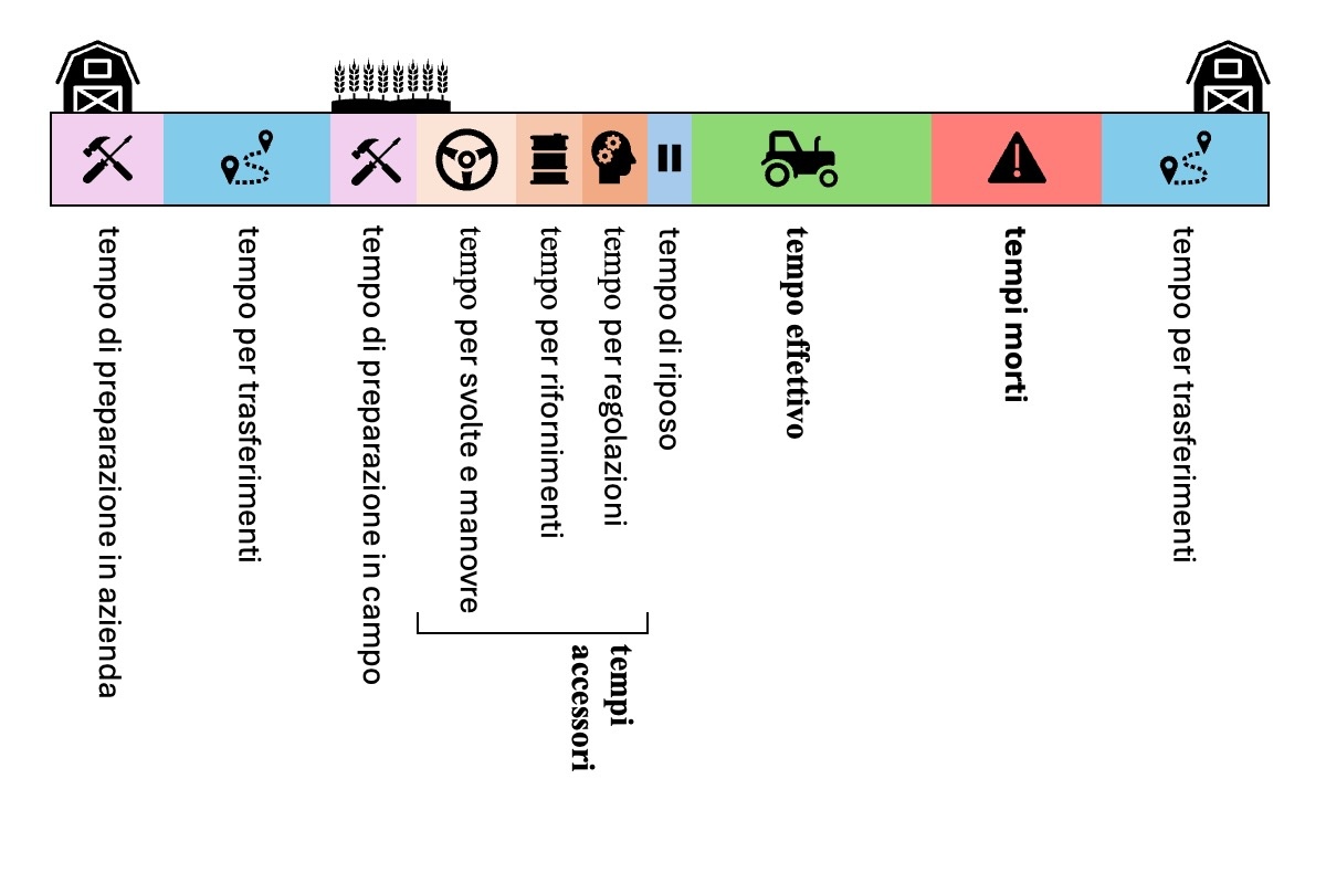 - i tempi accessori che rappresentano la somma dei tempi per svolte e manovre, per rifornimenti e scarichi, e per le regolazioni in campo;