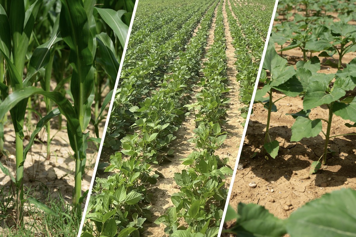 I risultati della stagione di semina 2024 nei terreni dell'azienda agricola Marano (da sinistra, mais, soia e girasole)