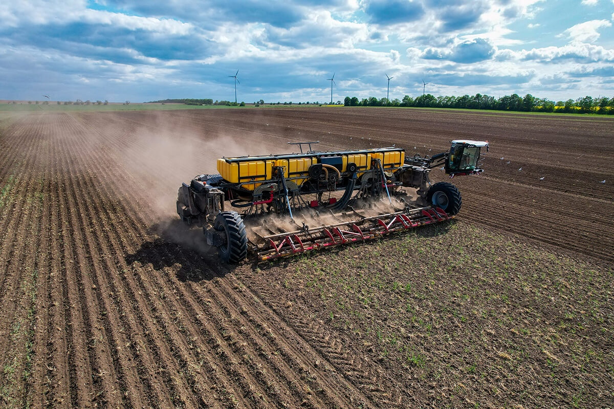 La gigantesca tramoggia ha una capacità totale di 20.500 litri, suddivisi in quattro serbatoi per fertilizzanti solidi e liquidi e per le sementi. Il sistema consente di applicare contemporaneamente fino a tre prodotti diversi.