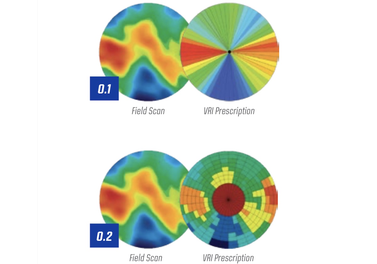 Mappa a settori e mappa a zone usate dai pivot di Reinke Irrigation per l'irrigazione a rateo variabile