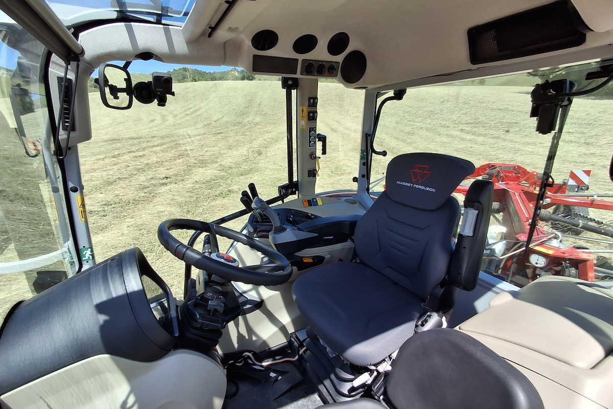 "Le sospensioni a molle viste sugli MF 5700 M sono state sostituite da due ammortizzatori meccanici posteriori che assorbono bene gli urti e compensano anche le oscillazioni laterali grazie al montaggio leggermente inclinato. In più, ci sono due silent block anteriori ereditati dalla serie precedente. Il sedile è proposto con una sospensione meccanica o pneumatica - precisa Bogoni. Il modello visto in campo possiede, oltre alle nuove sospensioni della cabina, la sospensione pneumatica opzionale del sedile".