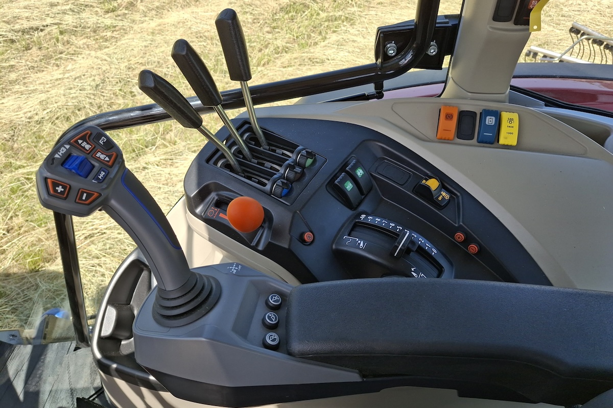 Il modello in prova da Adorni può contare anche su 3 distributori posteriori meccanici (2 di serie), controllabili tramite leve sul lato destro del posto guida e su 2 distributori ventrali elettroidraulici, controllabili dal joystick multifunzione.