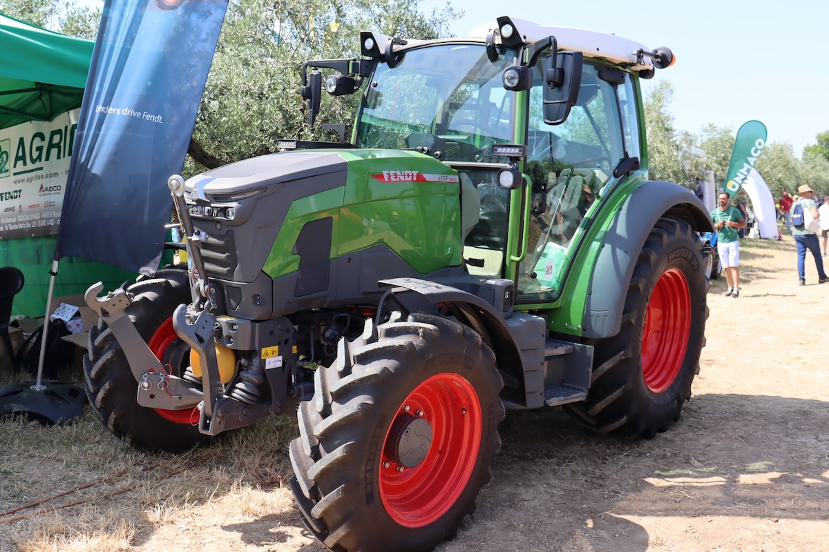 Prima volta in campo anche per il nuovo trattore elettrico e107 Vario di Fendt, presente sia nella versione standard da campo aperto che nella versione carreggiata stretta da vigneto, progettato per essere l'omologo elettrico a zero emissioni della serie 200 Vario.