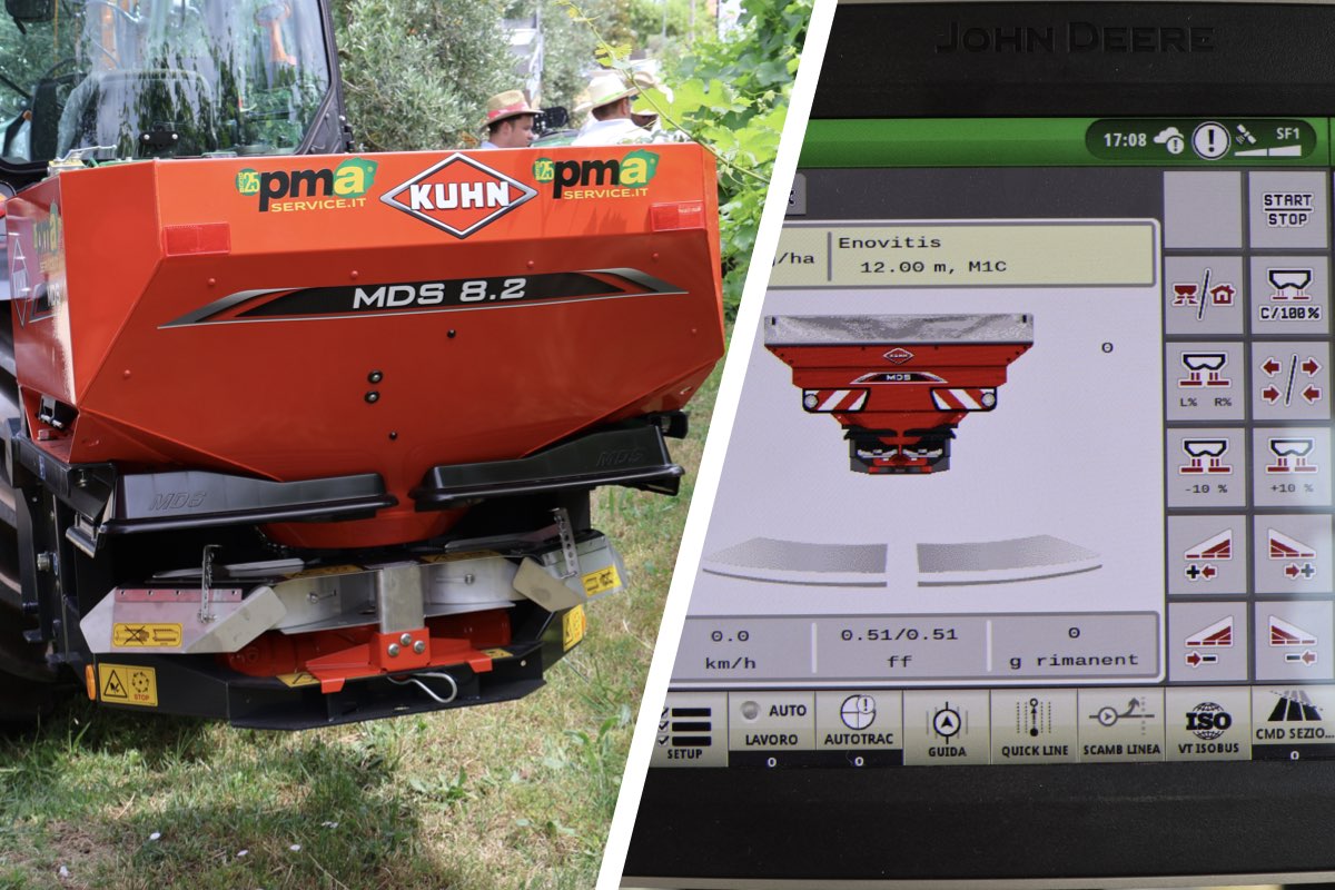 Debutto ad Enovitis per lo spandiconcime da vigneto MDS 8.2 di KUHN che integra su tutta la gamma la tecnologia Isobus, permettendo un dosaggio proporzionale alla velocità e alle mappe di prescrizione. Il rateo variabile si aggiunge così alla regolazione in continuo, ogni due secondi, operata grazie alla presenza di due celle di carico sul telaio.