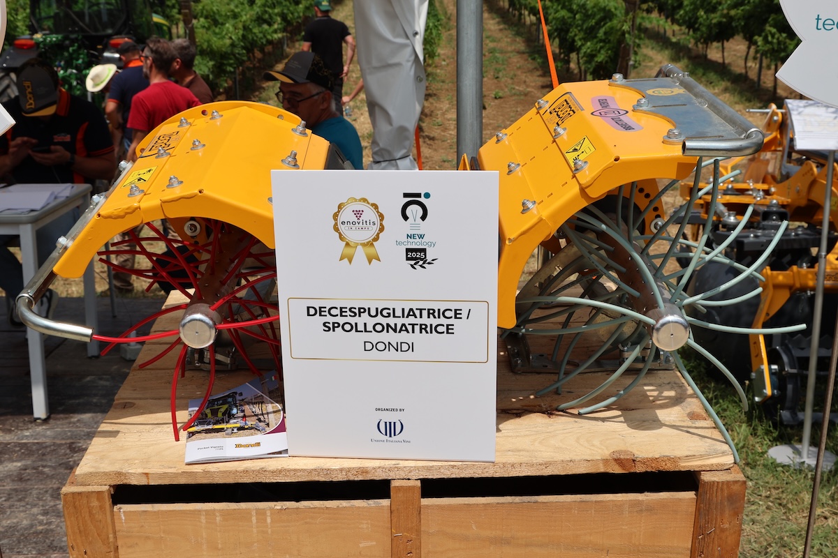 Dopo la segnalazione come Novità Tecnica a Eima 2024, la nuova spollonatrice-decespugliatrice a filo di Dondi si è aggiudicata anche il riconoscimento New Technology. Progettata per vigneti a spalliera con interfila da 1,2 a 4,5 metri, l'attrezzatura combina le funzioni di spollonatura e decespugliatura in un’unica testata modulare, regolabile in rotazione, assetto e tipo di fili.