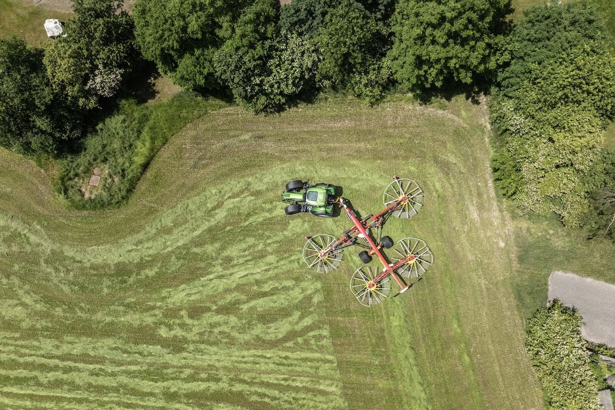 Il ranghinatore a quattro rotori Top VT 12540 C è una delle nuove attrezzature per la fienagione in campo aperto presentate lo scorso 2024 dall'austriaca Pöttinger.