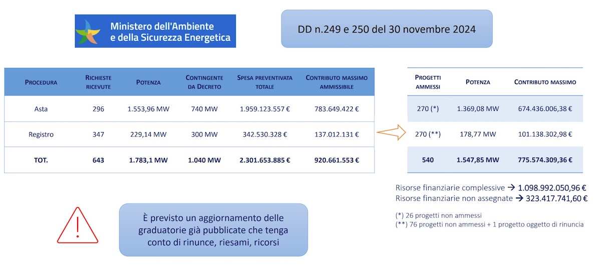 A proposito di graduatorie, Nicoletta Muzio ha ricordato quali sono stati i risultati del precedente bando con i dati di partecipazione: a fronte di 643 richieste, di cui 347 tramite Registri, sono stati ammessi 540 progetti (270 per i Registri e 270 per le Aste). Per quasi 1 miliardo e 100 milioni a disposizione da Pnrr, ci sono ancora 323 milioni e 417.741 non impegnati e che quindi sono stati rimessi in gioco.