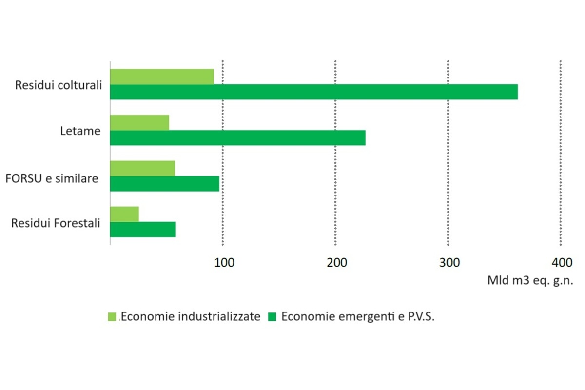 Il potenziale globale sostenibile di biogas e biometano è stimato in circa mille miliardi di metri cubi all'anno, equivalente al 25% della domanda globale di gas naturale. La maggior parte del potenziale si trova in economie emergenti come Brasile, Cina e India. Le stime del potenziale escludono il concetto del "biogasfattobene" basato su colture di copertura, in quanto praticato solo in Italia e in minor misura in Francia, Germania, Usa e India. Sono state escluse dalle stime anche le colture dedicate su terreni marginali. Pertanto, i mille miliardi di metri cubi si riferiscono alle matrici più "convenzionali": Forsu, deiezioni zootecniche e residui agricoli. I costi di produzione variano: il biometano può essere prodotto a un costo medio di 18 USD/GJ (56 euro/MWh), con alcune regioni che offrono costi inferiori a 10 USD/GJ (31 euro/MWh). Le materie prime utilizzate nella dieta dei digestori includono residui agricoli, letame e rifiuti urbani, mentre i residui forestali sono l'opzione preferita per gli impianti di gassificazione. La vicinanza alle infrastrutture, come gasdotti e strade, riduce i costi di raccolta e trasporto.