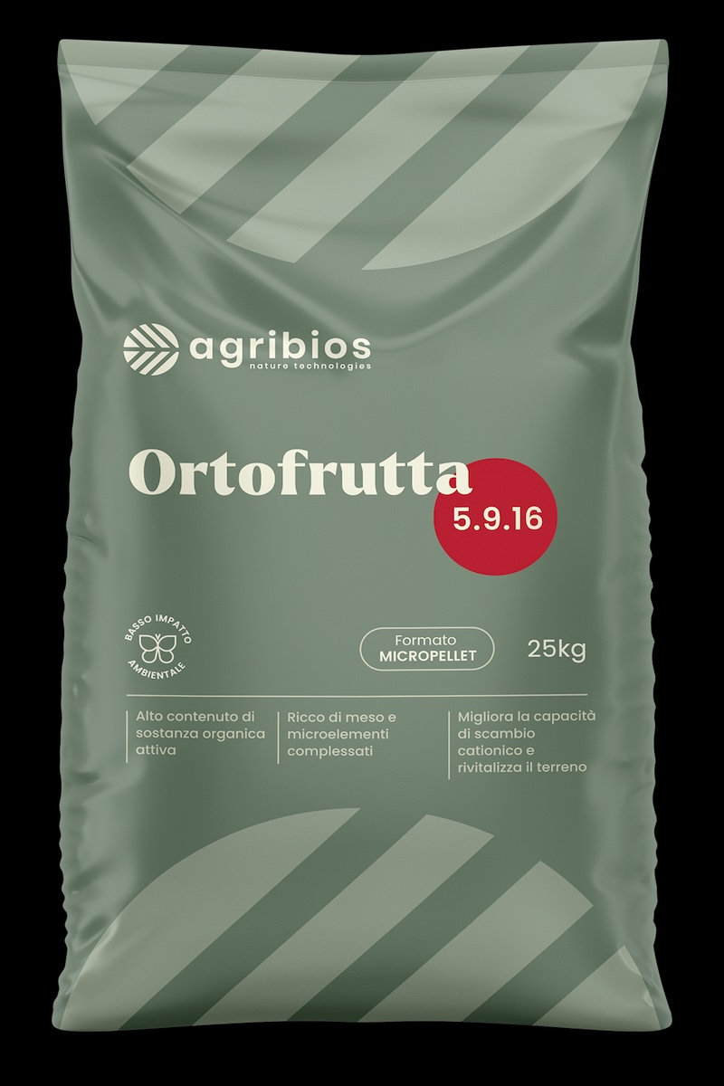 Ortofrutta 5.9.16 è un concime organo minerale che consente, con un solo passaggio, di apportare sia la frazione minerale (azoto, fosforo e potassio), sia un'importante quantità di matrice organica costituita da una miscela di letami altamente umificati.